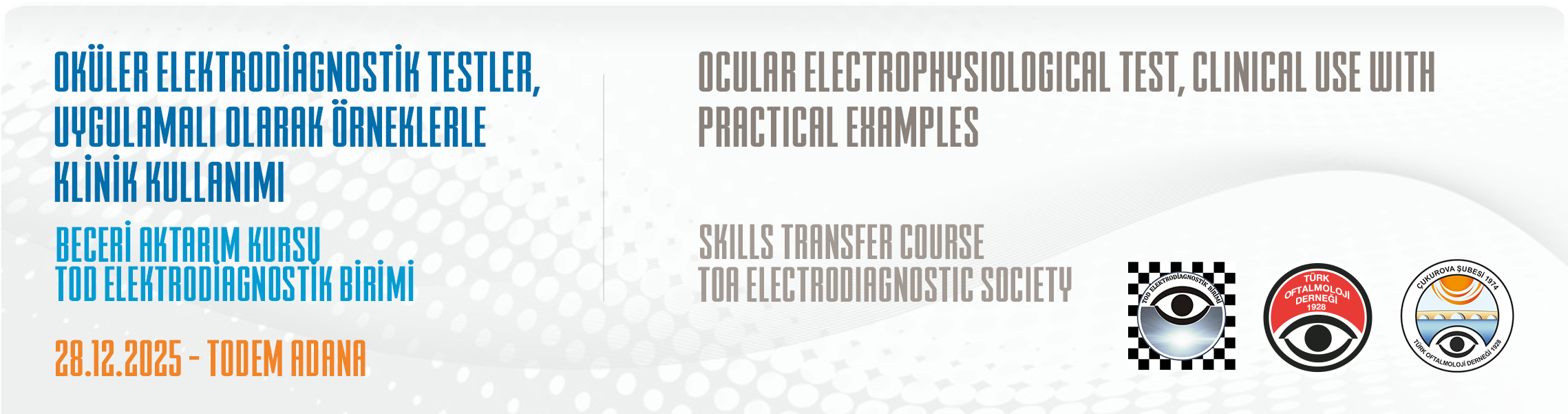 The Skills Transfer Course (BAK) will be held in Adana TODEM on Sunday, December 28, 2025, by the Electrodiagnostic Society of the Turkish Ophthalmology Association. The subject of the Skills Transfer Course (BAK) is ‘Ocular Electrophysiological Test,Clinical Use with Practical Examples’. It is my great privilege and pleasure to invite you to this course.