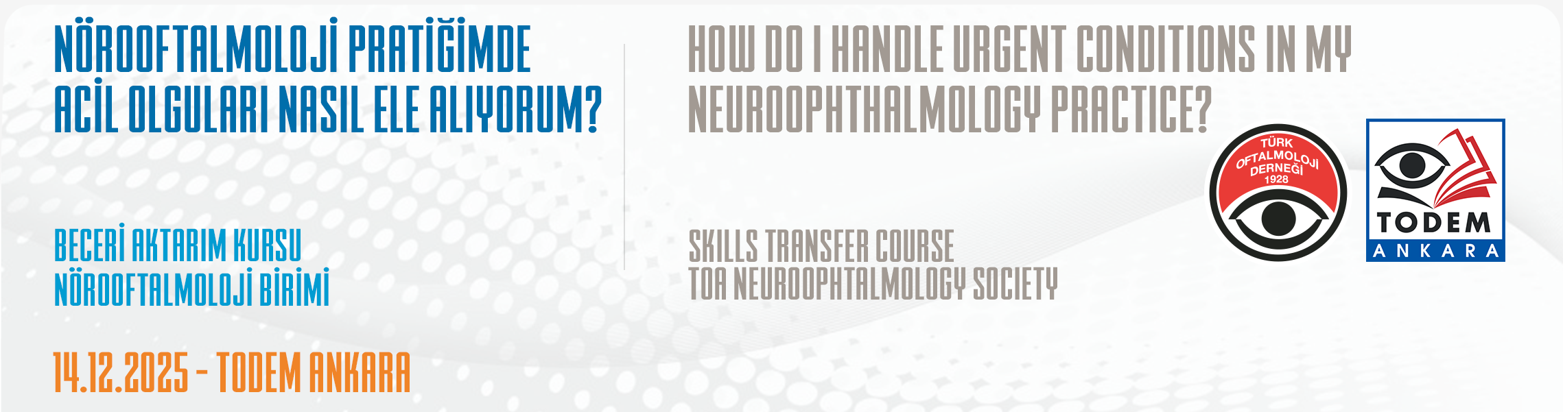 Nörooftalmoloji pratiğimde acil olguları nasıl ele alıyorum? How do I handle urgent conditions in my neuroophthalmology practice? 10:00 - 14:30 Beceri Aktarım Kursu / Skills Transfer Course |
