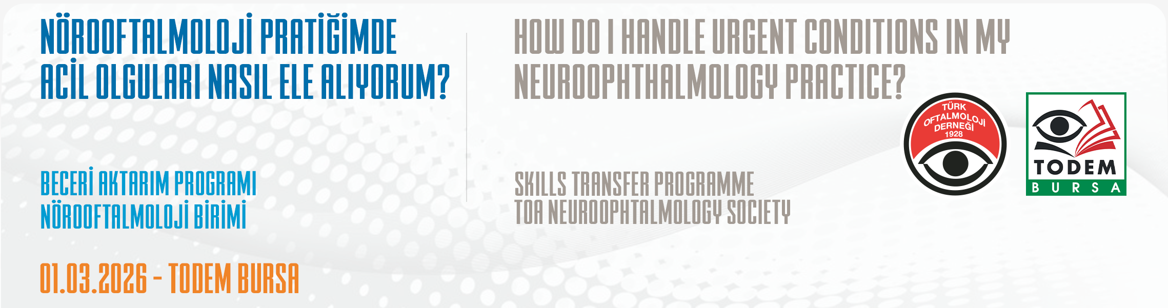 The Skills Transfer Course Of Turkish Ophthalmological Association Neuro-ophthalmology Division, titled as “How do I handle urgent conditions in my neuroophthalmology practice?” will be held on 01.03.2026 at TODEM Bursa.