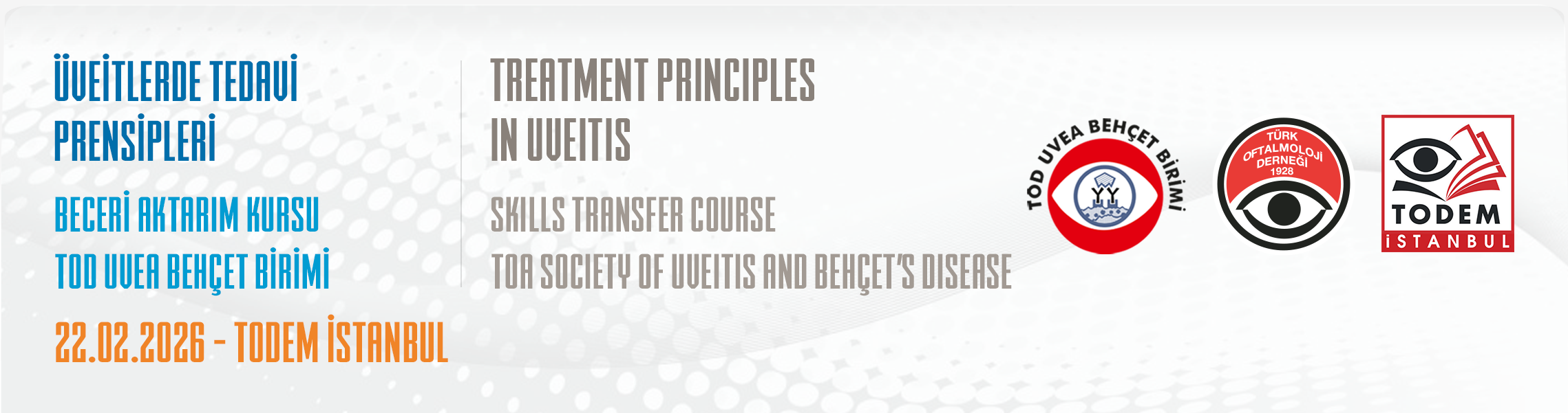 We are pleased to invite you to the Skills Transfer Course (STC) on Principles of Uveitis Management, which will be held in TODEM İstanbul by the Uvea and Behçet Disease Society of the Turkish Ophthalmological Association and will consist of both theoretical and practical sessions.