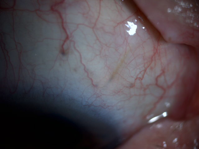 Xen jel stent açısından literatüre gözatacak olursak, De Gregorio ve ark. çalışmalarında açık açılı glokom ve katarakt birlikteliği olan 33 olgunun 41 gözüne fako-Xen uygulanarak 1 yıllık takip sonuçları değerlendirilmiştir. Ameliyat öncesi GİB ve ilaç sayısı ortalaması 22.5 ± 3.7 mmHg ve 2.5± 0.9 iken, takip süresi sonunda sırasıyla 13.1±2.4 mmHg ve 0.4 ± 0.8 olarak tespit edilmiştir. GİB düşüş oranı %41.82 olmuştur. Bizim ulusal kongrede sunacağımız çalışmamızda glokom ve katarakt birlikteliği olan 10 olgunun 16 gözüne fako ile kombine Xen implantasyonu yapılarak cerrahi sonuçlar değerlendirildi. Tüm olgularda antimetabolit ajan olarak 5FU kullanıldı. Ameliyat öncesi GİB ortalaması antiglokom tedavi ile (çoğu fix kombinasyon) 22.9±2.2 iken, ameliyat sonrası son kontrol muayenesinde 13.7±1.9 mmHg olarak tespit edildi. GİB düşüşü istatistiksel olarak anlamlı bulundu (p<0.05). Ameliyat öncesi ilaç sayısı ortalaması 1.3±0.6 olan olguların hiçbirinde ameliyat sonrası ilaç gereksinimi olmadı (Resim 5,6).